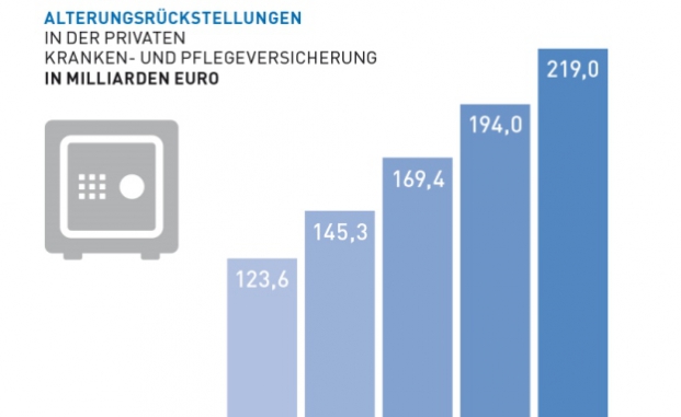 219 Milliarden Euro – das ist die aktuelle Höhe der Rückstellungen von Privatversicherten für höhere Gesundheitsausgaben im Alter. Allein die jährlichen Zuwächse entsprechen rund 6 Prozent der Jahres-Sparleistung der Bundesbürger. Alterungsrückstellungen tragen damit maßgeblich zum Investitionsvolumen in Deutschland bei.