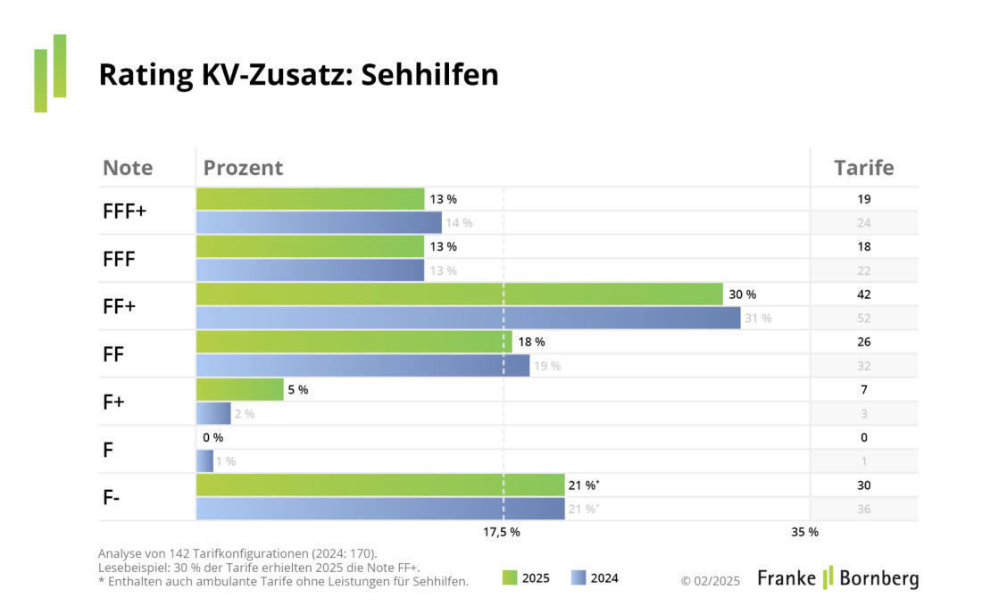 Rating-Spiegel für Sehhilfen-Zusatzversicherungen 2025 (Quelle: Franke und Bornberg)