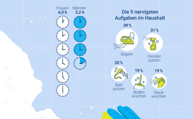 Die Tage werden wieder länger, die Sonne scheint ein wenig öfter und es macht sich die Lust auf Frühling breit. Nicht wenige Bundesbürger schwingen nun beherzt den Putzfeudel, um die Bude vor Frühlingsanfang auf Vordermann zu bringen. Ganz ungefährlich ist das aber nicht, denn jeder Fünfte hat sich beim Putzen schon mal verletzt, wie die Infografik zeigt.