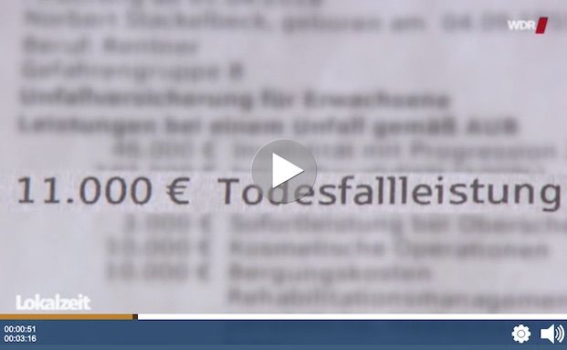 Neun Monate nach dem unfallbedingten Tod ihres Mannes wartet eine Gladbeckerin immer noch auf die Todesfallleistung des Unfallversicherers. Dabei würden die 11.000 Euro der Witwe sehr helfen. Wie viel Bearbeitungszeit ein Kunde der Versicherung zugestehen muss und wie der Fall ausgegangen ist, zeigt ein kurzer Bericht der WDR-Sendung „Lokalzeit“.