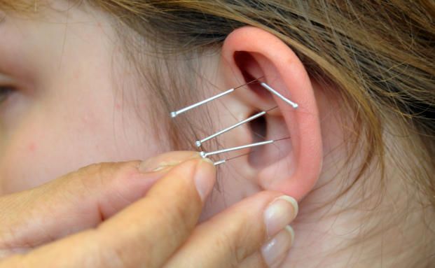 Behandlung einer Jugendlichen mit Akupunkturnadeln.