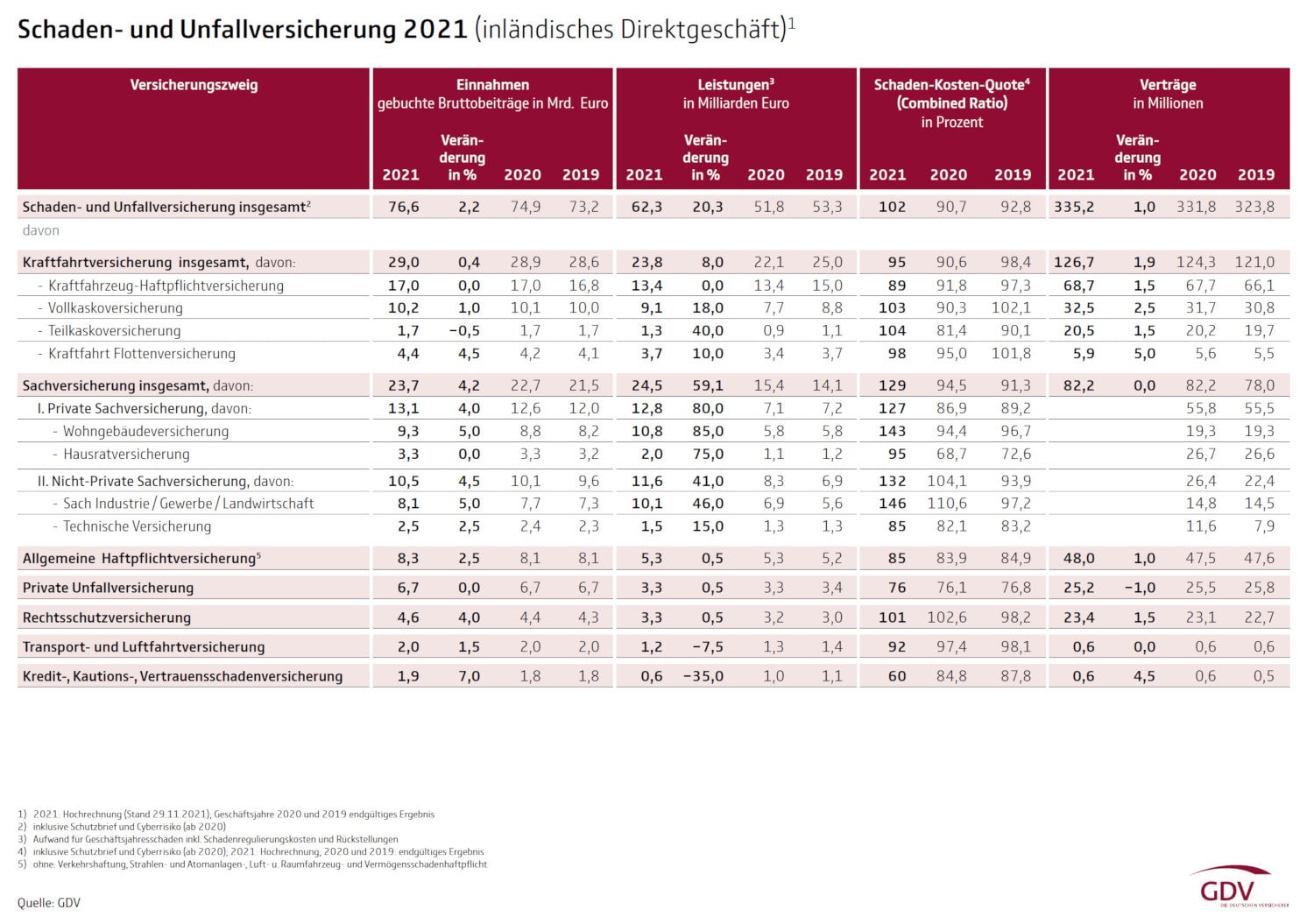 Somit rechne der Verband für 2021 zwar mit um gut 2 Prozent auf 76,6 Milliarden Euro gestiegenen Beiträgen. Zugleich steige allerdings der Aufwand für Schäden um satte 20 Prozent auf 62,3 Milliarden Euro. Damit lande die Schaden-Kosten-Quote bei 102 Prozent und das Ergebnis somit in den roten Zahlen. „Aber angesichts der Rekordschäden ein vorzeigbares Ergebnis“, meint Weiler. Es ist eben alles relativ.