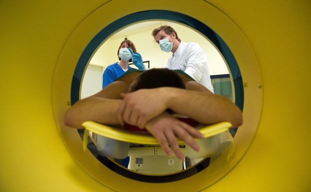 MRT-Untersuchung eines Patienten mit akuten Rückenproblemen: Welche Kasse die richtige ist, hängt vom Alter, von der individuellen Lebenssituation und vom Gesundheitszustand ab.