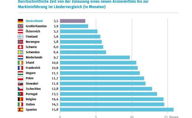 Zudem verfügten Patienten nirgendwo sonst in Europa über einen derart schnellen Zugang zu neuen Medikamenten, berichtet das WIP. So vergingen von der Zulassung bis zur Markteinführung hierzulande nur 3,5 Monate, während es in den Niederlanden 5,8 und in Spanien sogar fast 16 Monate seien.