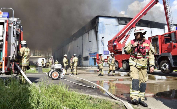 Feuerwehrmänner löschen einen Brand in einer Lagerhalle in Berlin: Für Unternehmen können Brände wie diese existenzielle Folgen haben, wenn etwa die gelagerte Ware komplett verbrennt.