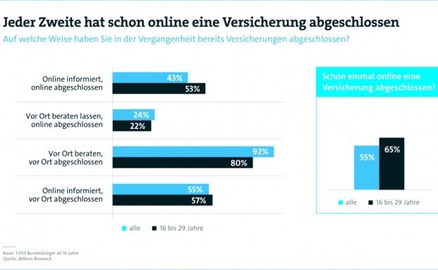 Per Mausklick die Kfz-Versicherung wechseln, den Hausrat gegen Einbruch und Wasserschäden versichern oder eine Unfallversicherung abschließen – immer mehr Deutsche entscheiden sich für den Versicherungsabschluss im Internet. Bei den Jüngeren sind es bereits zwei Drittel, die mindestens einmal eine Versicherung auf diesem Weg abgeschlossen haben.