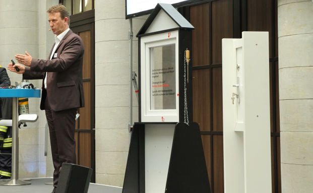 Bernd Rackensberger, ED-Sicherungsbevollmächtigter der Gothaer, zeigte zusammen mit freiwilligen Helfern aus dem Publikum an einem echten Fenster und einer echten Tür, wie man einen Schließzylinder knacken und einen Fensterrahmen aufhebeln kann. Der Grund: Viele Menschen unterschätzen Schwachpunkte an den potenziellen Einfallstoren ihrer eigenen vier Wände, wie etwa Plastikbeschläge, direkt überstehende Profilzylinder oder einfache Rollzapfen bei Fenstern. Der Experte riet Maklern, zusammen mit ihren Kunden die Schutzmaßnahmen in ihren Betrieben in Abhängigkeit von den geographischen und baulichen Gegebenheiten zu überprüfen und gegebenenfalls nachzubessern.