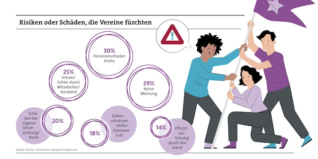 Das Vereinsleben ist vielfältig, und genauso breit sind die Risiken, mit denen Vereine konfrontiert sein können (siehe Grafik). „Das ist ein sehr weites Feld“, sagt Roman Potyka, Produkt- und Underwriting-Chef bei Hiscox. „Von klassischen Personen- und Sachschäden etwa durch schlecht gewartete Sportanlagen, eine versäumte Streu- und Wegepflicht oder typische Mietsachschäden an Gebäuden erweitert sich das Schadenbild um verschiedenste typische Vereinsthemen und Eigenschäden.“