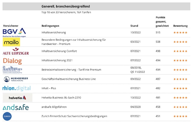 Franke und Bornberg bewertet zum ersten Mal Inhaltsversicherungen