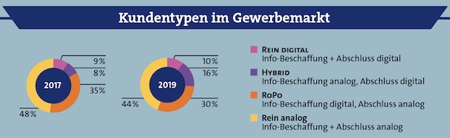 Ein Kernergebnis der Umfrage: Die Digitalisierung greift auch hier zunehmend um sich. Heise: „Der Anteil der digital durchgeführten Beratungen hat sich von 12 Prozent im Jahr 2017 auf 23 Prozent im vergangenen Jahr beinahe verdoppelt. Während 88 Prozent der Beratungen 2017 noch analog stattfanden, waren es 2019 nur noch 75 Prozent.“