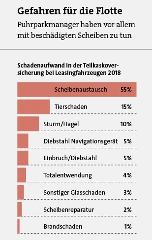Auf Spezial-Know-how setzt auch der Dienstleister Lease Plan, ein Spezialist für Autoleasing und Fuhrparkmanagement. Das Unternehmen stellte nach eigenen Angaben fest, dass ein Kunde mit über 220 versicherten Flottenfahrzeugen eine um 25 Prozent höhere Häufigkeit für einen Scheibenaustausch aufwies als andere Flottenbetreiber. Man habe dem Kunden dann empfohlen, „ein von uns erstelltes Info-Mailing zum Thema Glasschäden an seine Fahrer zu versenden“, berichtet Dieter Jacobs, Geschäftsleitung Fuhrparkmanagement bei Lease Plan Deutschland. Das Mailing sollte die Fahrer über die Kosten eines teuren Scheibenaustauschs im Vergleich zu einer deutlich günstigeren Scheibenreparatur „informieren und gleichzeitig sensibilisieren“, erläutert Jacobs das Vorgehen.