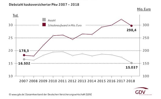 Autodiebstähle werden seltener, aber teurer