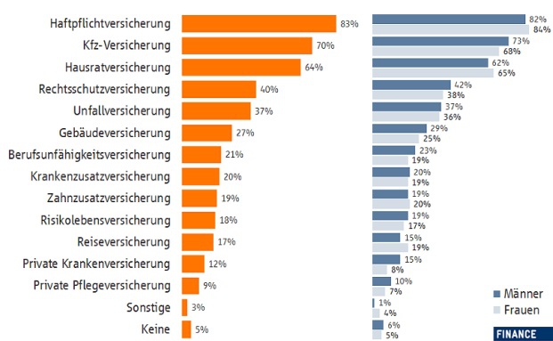 Deutsche besitzen im Mittel sechs verschiedene Versicherungen und zahlen dafür im Jahr rund 2.000 Euro an Beiträgen. Welche Versicherungen werden am häufigsten abgeschlossen – und welche am häufigsten in Anspruch genommen?