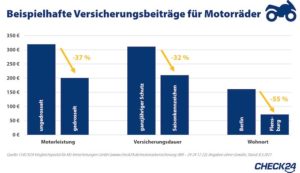 Das Vergleichsportal Check24 hat Sparmöglichkeiten in der Motorradversicherung untersucht. Das Ergebnis: Am meisten können Zweiradfans mit einer Motordrosselung sparen. Bis zu 37 Prozent weniger seien hier drin. Lohnenswert ist demnach das Senken der Motorleistung – dabei vor allem für Motorradfahrer mit der Führerscheinklasse A2.