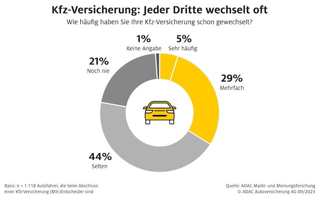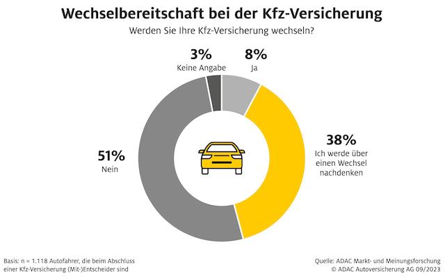 Fast jeder zweite Deutsche überlegt, ob er in diesem Jahr nicht die KFZ-Versicherung wechseln sollte. Das zeigt eine Umfrage der ADAC Versicherung. So zeigen sich aktuell 46 Prozent aller Autofahrer für einen Versicherungswechsel offen. 38 Prozent denken noch über einen Wechsel nach, 8 Prozent haben sich schon zu diesem Schritt entschieden. 51 Prozent der Befragten geben an, nicht wechseln zu wollen.