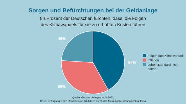 84 Prozent der Deutschen befürchten, dass der Klimawandel Folgen für ihre Geldanlage haben könnte. Ganz generell nimmt die Bedeutung von Nachhaltigkeit in den Finanzen der Bürgerinnen und Bürger zu: Mehr als die Hälfte geben das an. Die Nachfrage nach Nachhaltigkeitsfonds ist dementsprechend von 17 Prozent im vergangenen Jahr auf 28 Prozent in diesem Jahr gestiegen.