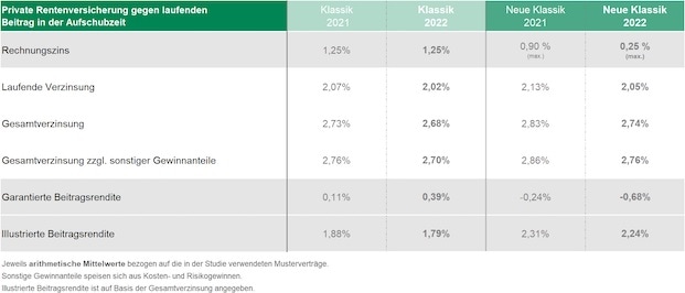 Bemerkenswert ist zudem, dass die laufende Verzinsung für die im Neugeschäft angebotenen Tarife bei klassischen Tarifen mit durchschnittlich 2,15 Prozent etwas höher ausfalle als in der Neuen Klassik. Aus Sicht von Heermann verwundere das aber „nur auf den ersten Blick“, wenn man bedenke, dass eine höhere Überschussbeteiligung das wichtigste Verkaufsargument der Neuen Klassik ist.