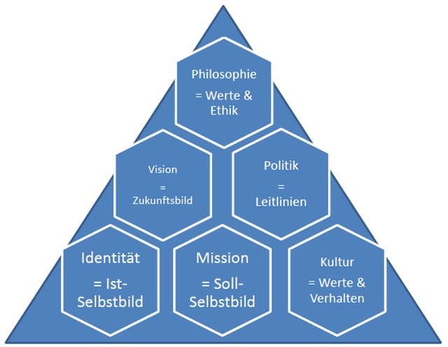 Ausgangspunkt für jedes Geschäftsmodell sollte die normative Ebene sein. Das sind übergeordnete Entscheidungen mit dem Charakter einer Norm. Sie sind das Wertefundament und beruhen auf den Wertvorstellungen der Unternehmensleitung. Gerade in Kleinunternehmen wird vieles davon ungeschrieben gelebt. Es ist jedoch ein großer Unterschied, ob es „im Kopf“ des Chefs oder niedergeschrieben ist. Elemente der normativen Unternehmensführung sind: