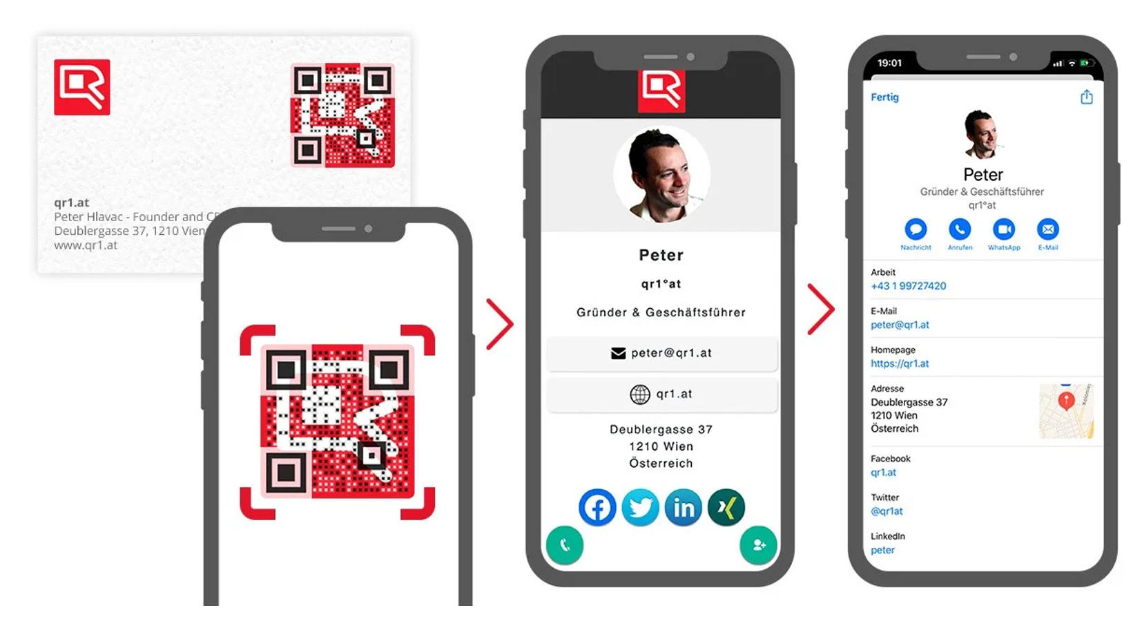 - Digitale Visitenkarte mit Social-Media und Website-Links ergänzen.