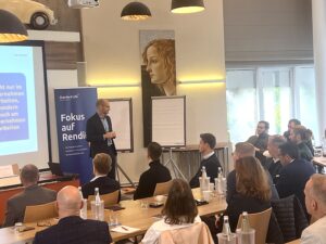 „Die Themenauswahl ist sehr gut, weil über diese wichtigen Themen für die Zukunft in der Branche zu wenig gesprochen wird“, sagt David Meyhöfer von M&W Finanzoptimierung, der sich besonders für die KI-Themen interessiert. „Daran kommen wir alle nicht mehr vorbei“, so der Makler, der bereits den ersten „Future-Ready”-Kurs über ein Jahr absolviert hat und dadurch vielfältige Impulse für die Prozesse in seinem Unternehmen umsetzen konnte – was zu einer Verdopplung des Gewinns führte.