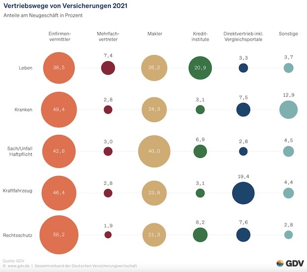 „Insbesondere Rechtsschutz- und Schaden- beziehungsweise Unfallversicherungen werden wesentlich häufiger als in früheren Jahren digital bei Maklern oder Vertretern abgeschlossen“, kommentierte der Verband die Zahlen. Der Vertrieb nutze hier digitale Tools für die Kommunikation und Interaktion mit den Kunden.