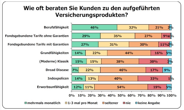 Für seine Umfrage hat das Institut für Vorsorge und Finanzplanung (IVFP) nach eigenen Angaben mehr als 120 Vermittler befragt. Alle Ergebnisse finden Sie hier.