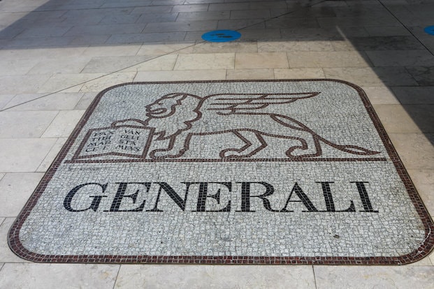 Das Generali-Logo im Eingangsbereich der Generali-Zentrale in Mailand. Foto: picture alliance / NurPhoto | Mairo Cinquetti