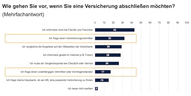 Junge Menschen zwischen 18 und 29 Jahren ziehen den Kontakt zu einem Versicherungsvermittler gegenüber einem Vergleichsportal vor, wenn sie eine Versicherung abschließen möchten. Am wichtigsten bleibt ihnen aber der Rat aus dem engsten Bekanntenkreis, wie eine Umfrage von Senacor Technologies ergab.