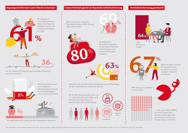 „Das eigene Leben selbstbestimmt und ohne finanzielle Abhängigkeiten oder Ängste zu gestalten, ist ein wichtiges Grundbedürfnis vieler Menschen“, sagt Jörg Arnold, Geschäftsführer von Swiss Life Deutschland. „Die Studienergebnisse bestätigen, wie hoch der Beratungsbedarf in Deutschland ist.“
