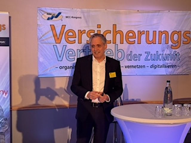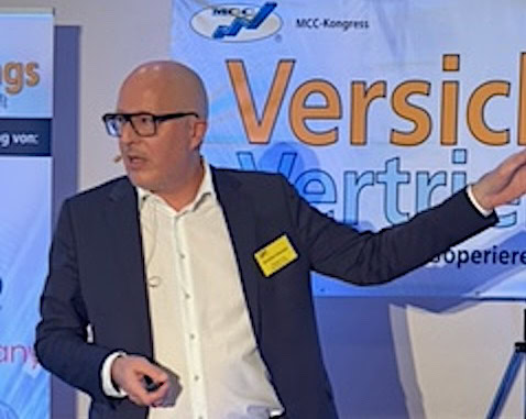 Norman Wirth auf dem MCC-Kongress „Versicherungsvertrieb der Zukunft“. Foto: Pfefferminzia