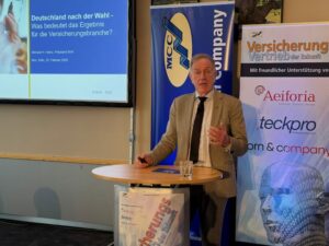 Michael Heinz, Präsident des Bundesverbandes Deutscher Versicherungskaufleute (BVK), zitierte zunächst mit einem Augenzwinkern Konrad Adenauer mit dem Satz: „Der Wähler hat versagt.“ Immerhin aber erfordere das Wahlergebnis keine erneute Dreierkonstellation.