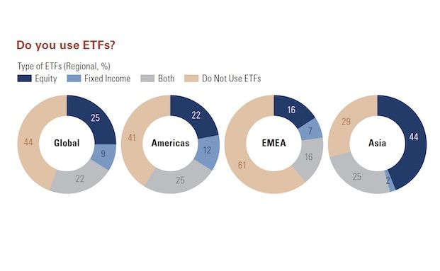 - Mehr als die Hälfte der Versicherer investiert in ETFs (56 Prozent). Festverzinsliche ETFs werden am häufigsten verwendet, um kurzfristige taktische Portfolioanpassungen vorzunehmen oder die operative Effizienz zu steigern.