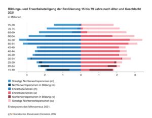 Erschwerend kommt hinzu, dass die Erwerbsbeteiligung der Frauen noch immer deutlich niedriger ist als die der Männer. Für die Bevölkerung zwischen 30 und 39 Jahren lag die Erwerbsquote der Frauen laut den Angaben rund 11 Prozentpunkte niedriger als die der Männer. Für die Altersgruppen zwischen 40 und unter 65 Jahren lag die Differenz im Schnitt bei etwas über 8 Prozentpunkten. „Eine größere Arbeitsmarktpartizipation von Frauen könnte somit zur Aktivierung eines insgesamt größeren Erwerbspersonenpotenzials beitragen“ schlussfolgern die Statistiker.