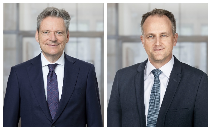 Jörg Arnold (links), Chef von Swiss Life Deutschland, gibt diesen Posten im Juli 2024 auf. Sein Nachfolger wird Dirk von der Crone (rechts).
