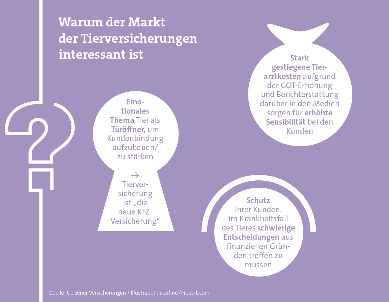 Aktuelle Zahlen aus der Haustierbranche unterstreichen das. Laut dem Zentralverband Zoologischer Fachbetriebe leben mehr als 30 Millionen Katzen, Hunde und Kleintiere in deutschen Haushalten. Am beliebtesten sind Katzen (15 Millionen) und Hunde (11 Millionen). „Das Marktpotenzial ist hoch, denn aktuell verfügen 44 Prozent der Pferde-, 30 Prozent der Hunde- sowie 23 Prozent der Katzenbesitzer über eine Tier-OP- oder -krankenversicherung“, sagt Felix Garlipp, Produkt- und Portfoliomanager der Uelzener Versicherungen, die sich auf die Absicherung von Tieren spezialisiert hat und in diesem Jahr ihr 150. Bestehen feiert. „Generell gibt es eine stärkere Nachfrage, insbesondere bezüglich der Tierkrankenversicherung. Zudem gehen viele Bestandskunden von einer OP- zur Tierkrankenversicherung über“, berichtet der Fachmann.