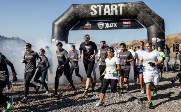 Start der Financial Bravehearts 2018: Rund 25 Hindernisse mussten die Läufer auf einer Strecke von 14 Kilometern passieren. Darunter Schlammgruben, Wassertümpel, steile Anstiege sowie eine 40 Meter lange Rutsche, ein riesiges Schaumbad und Hindernisse, die ohne Teamleistung gar nicht bewältigt werden konnten.