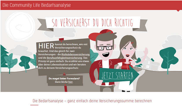 Das Konzept Community Life soll neue Wege in der Versicherungsbranche beschreiten. Ziel ist die volle Transparenz für den Kunden. Er soll von der Antragstellung über den Bankeinzug bis hin zur Schadenbetreuung alles bequem vom Rechner oder Mobiltelefon aus bestimmen können. Auch die Entscheidung, wie Überschüsse verwendet werden sollen, zum Beispiel für wohltätige Zwecke, hat der Kunde in der Hand.