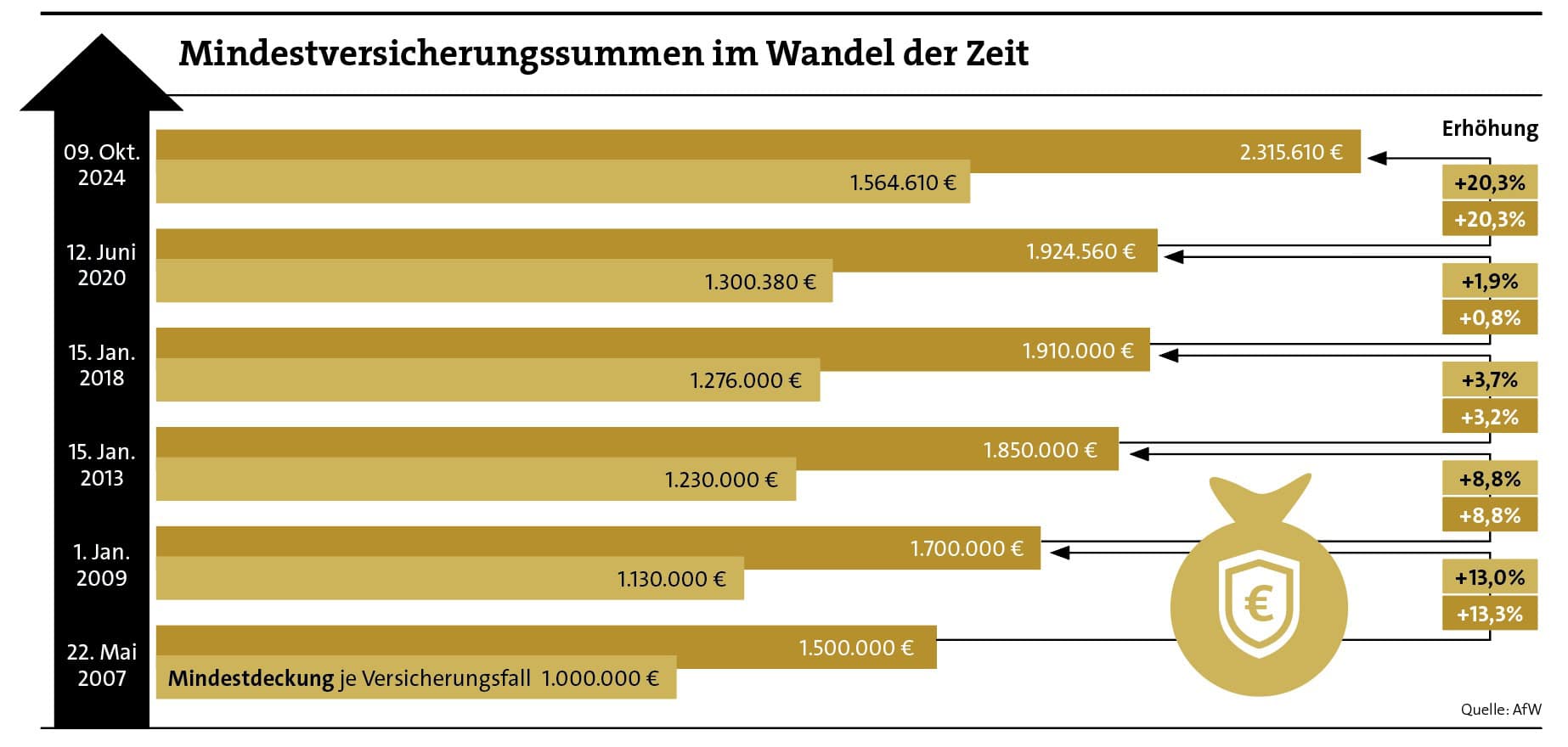 In der nächsten Zeit werden viele Makler Post von ihrem Anbieter der Vermögensschadenhaftpflichtversicherung (VSH) erhalten. Grund ist die Delegierte Verordnung (EU) 2024/896 der Europäischen Kommission vom 20. März 2024. Die Mindestversicherungssummen für die VSH für Versicherungsvermittler und -berater werden aufgrund der gestiegenen Verbraucherpreise erhöht. Und zwar um mehr als 20 Prozent.