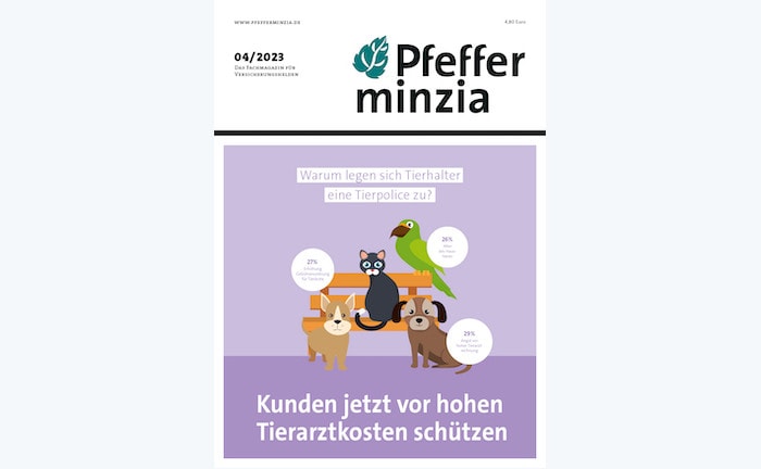 In der neuen Ausgabe unseres Pfefferminzia Printheftes widmen wir uns unter anderem den Tierversicherungen, und warum die Anpassung der Gebührenordnung für Tierärzte hier einen guten Beratungsansatz liefert. Wir gehen auf die Altersvorsorge für Frauen ein, auf den Trend zu Elektromobilität auch in Flottenversicherungen und schauen uns Budgettarife in der bKV an. Ein Pfefferminzia Plus rund um die Arbeitskraftabsicherung ist auch dabei. Jetzt bestellen!