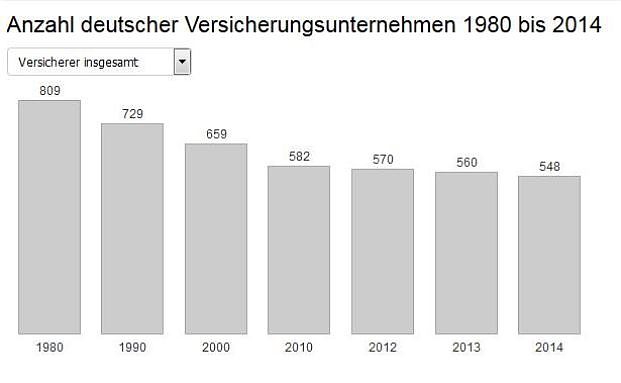 Laut Branchenstatistik des Versicherungsverbands GDV ist die Branche am Schrumpfen: Seit 1980 ist die Zahl der am deutschen Markt aktiven Versicherer um ein Drittel zurückgegangen. Vor allem die Finanzkrise 2008 hat den Unternehmen zu schaffen gemacht.