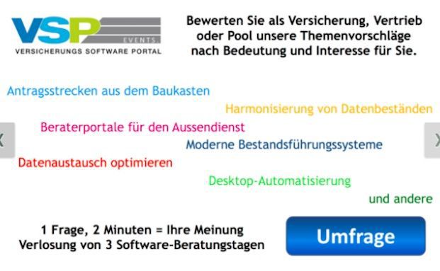 Das Versicherungssoftwareportal (VSP) hat sich für 2018 etwas Neues ausgedacht: Versicherungen, Vertriebe und Pools sollen im Rahmen regionaler Veranstaltungen passende …