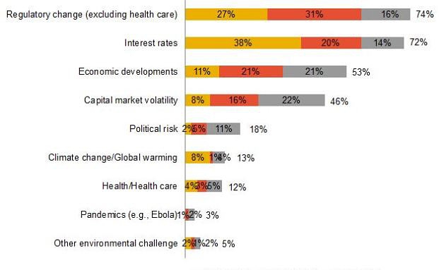 Eine stärkere Regulierung und das anhaltende Niedrigzinsumfeld bereiten Versicherern weltweit die größten Kopfschmerzen. Trotzdem beschäftigen sich nur wenige Versicherer mit der Frage, ob ihr Geschäftsmodell auf lange Sicht überhaupt noch tragfähig ist. Das zeigt eine Studie der Unternehmensberatung Towers Watson.