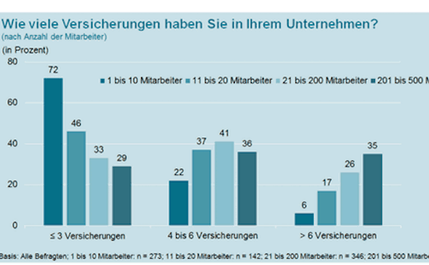 Die Grafik zeigt: Je größer ein Unternehmen, desto mehr Verssicherungen hat es.