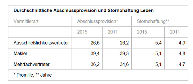 Etwas angestiegen ist laut der Untersuchung aber die durchschnittliche Stornohaftungszeit, die 2011 noch nicht gesetzlich auf mindestens fünf Jahre gesetzt war. Spürbar höher liegt der Schnitt in der Ausschließlichkeit. Hier hat auch gegenüber 2011 der größte Anstieg mit einem halben Jahr im Mittel stattgefunden.