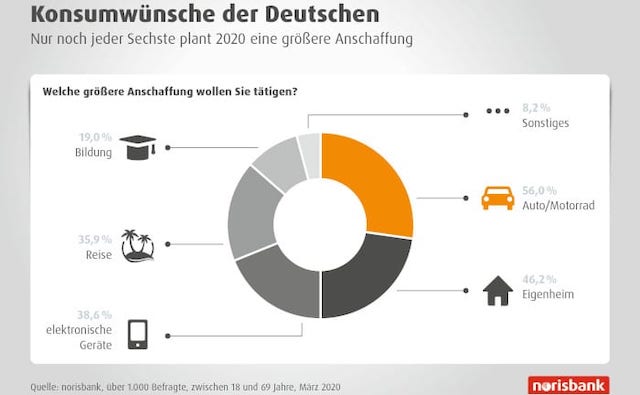 Die Auswirkungen der Maßnahmen bezüglich der Corona-Pandemie strahlen auf die Anschaffungspläne und das Sparverhalten der Deutschen aus. Fast die Hälfte der Bundesbürger (45 Prozent) will aufgrund der Corona-Krise die persönlichen finanziellen Auswirkungen abwarten, bevor sie sich Größeres leisten. Daher haben sie den Kauf eines neuen Autos, neuer elektronischer Geräte oder etwa die Investition in eine Immobilie erst einmal zurückgestellt.