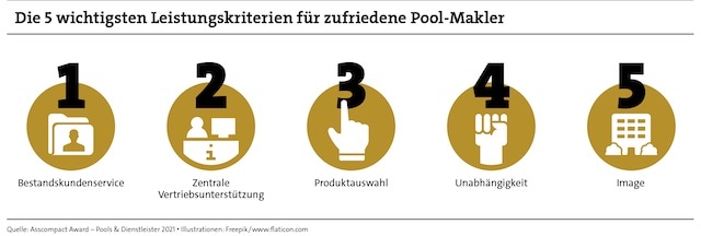 Nun tat sich allerdings in den vergangenen Jahren so gut wie gar nichts bei der Zahl der durchschnittlichen Pool-Anbindungen. Mit 2,5 Pools oder Dienstleistern arbeiten die von „Asscompact“ befragten Vermittler zusammen – das ist nur minimal weniger als vor drei Jahren, als im Schnitt 2,6 Anbindungen bestanden. Zudem scheinen Makler nicht unbedingt sehr wechselfreudig, denn die jeweiligen Anbindungen währen im Durchschnitt 13 Jahre lang. Wenn Makler ihren Partner auswechseln, tun sie das also häufig nicht leichten Herzens.