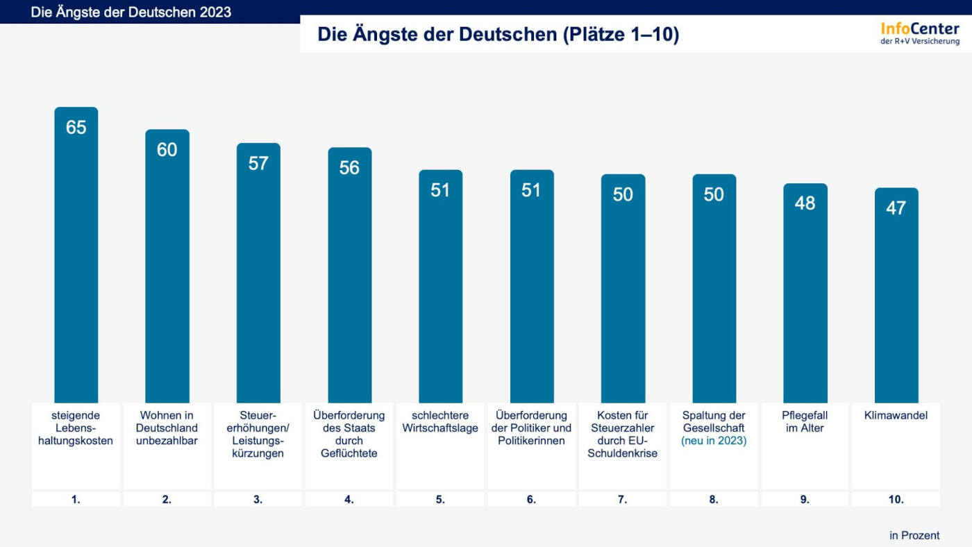 Die Ängste der Deutschen, Plätze 1 bis 10 (Quelle: R+V Infocenter)