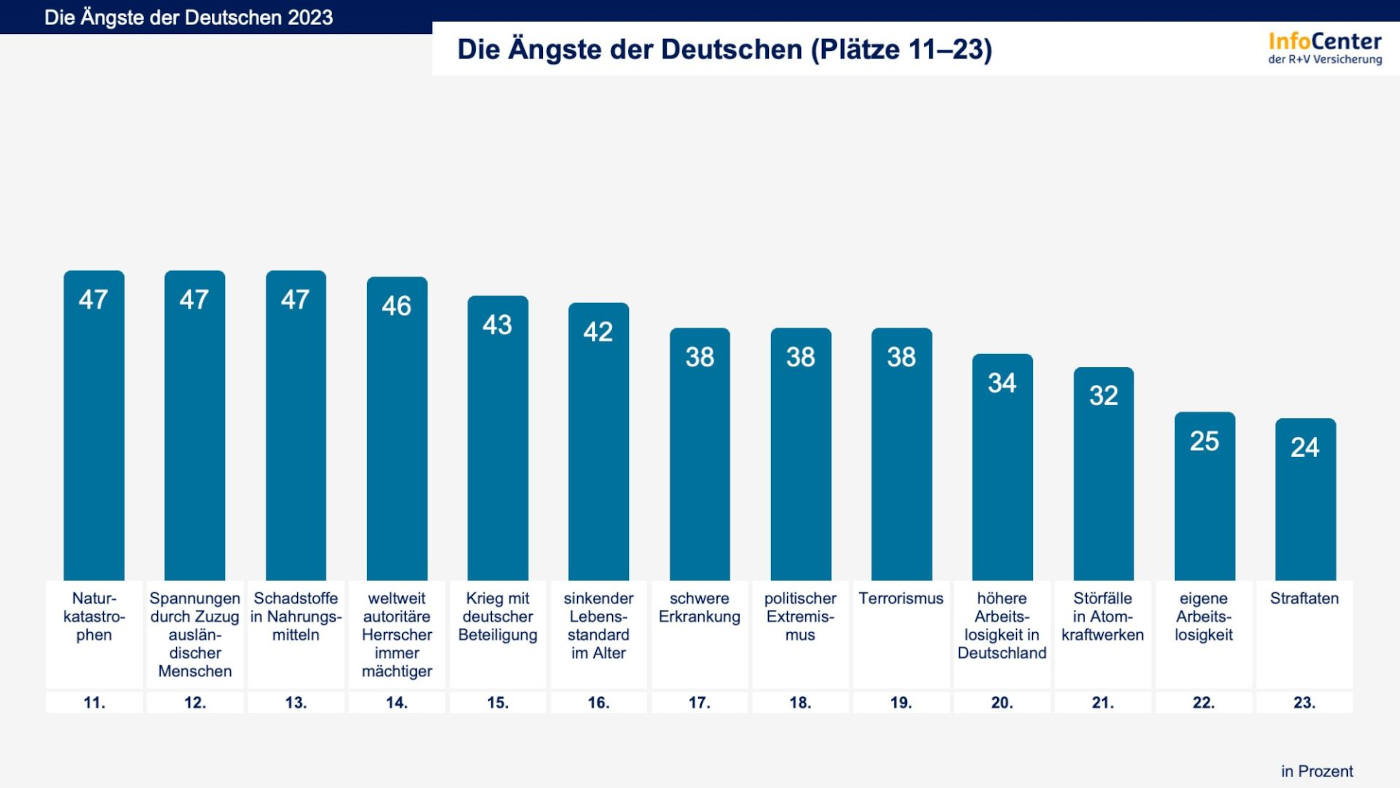 Die Ängste der Deutschen, Plätze 11 bis 23 (Quelle: R+V Infocenter)
