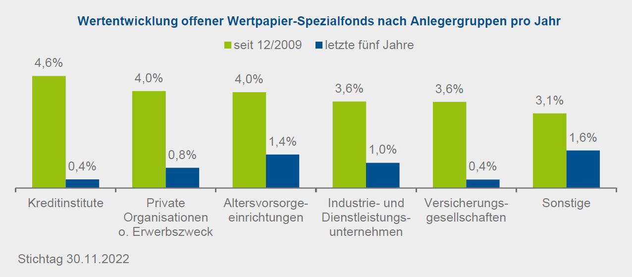 Wertentwicklung von Spezialfonds nach Anlegergruppen aufgeteilt