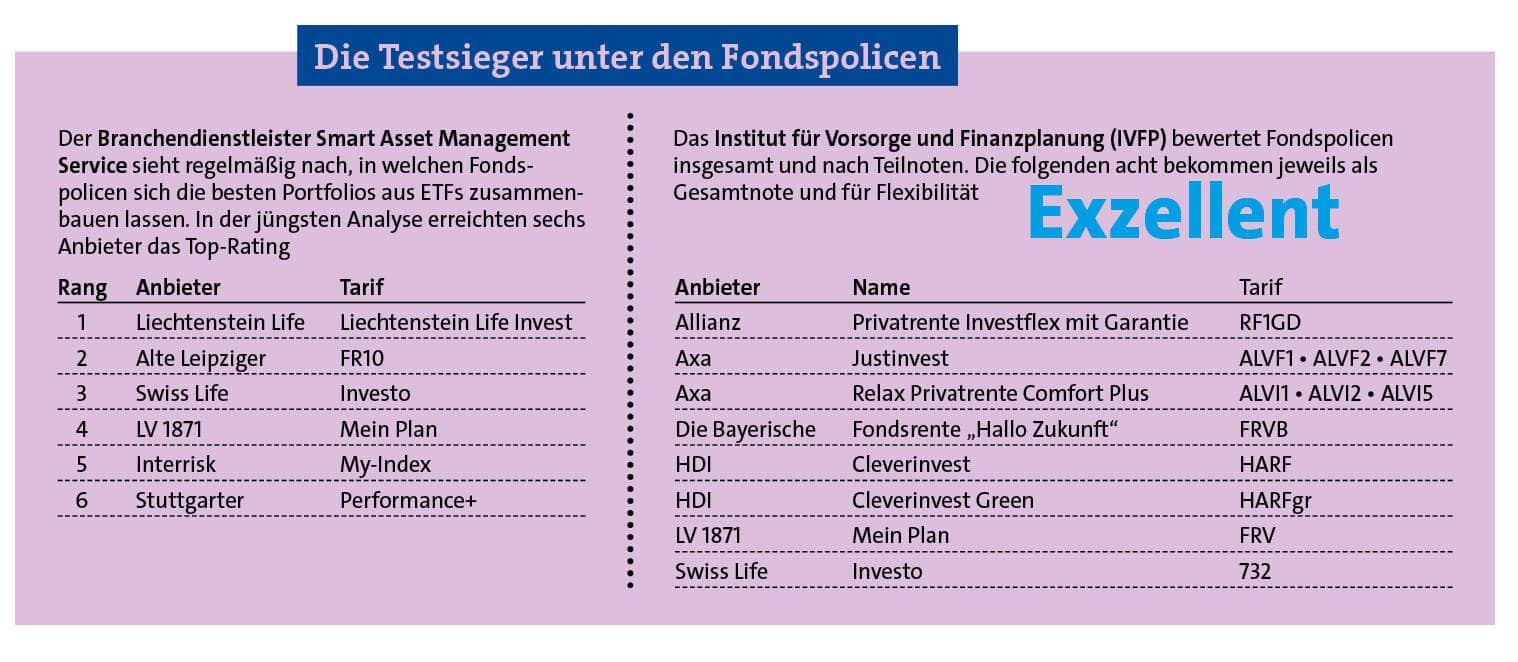 Damit bringen nicht zuletzt die Trade Republics dieser Welt Schwung in die Welt der Fondspolicen. Sie scheuchen eine Branche auf, die jahrzehntelang von ihren Vorteilen gut leben konnte: Schließlich bieten Fondspolicen lebenslange Renten. Während der Laufzeit werden keinerlei Abgaben fällig, während im normalen Investmentdepot über jeder Umschichtung der Geier der Abgeltungsteuer kreist.
